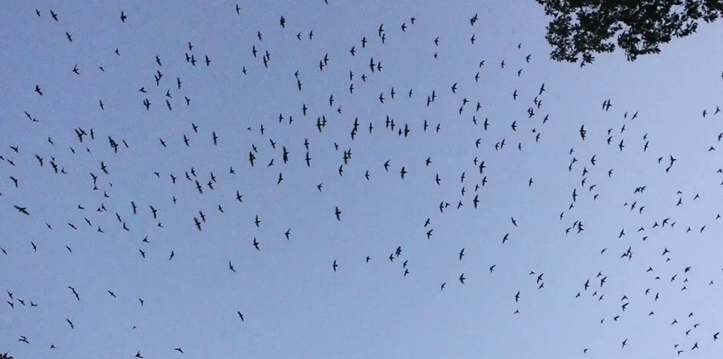 As a student I was taught to identify swifts by their distinctive shapeââa sickle and a cigarââhigh up in the sky. The more we look from our vantage point atop the castle, the more we see. One, five, fifty, a hundred, and more and more. But unlike the hoards of Passenger Pigeons that are storied to have once blocked out the sun, this massive flock is nearly imperceptible. If I wasnât looking for these tiny animals flying hundreds of feet up, I very well could have missed them entirely. Maybe the billionaires at the tops of the 59th Street skyscrapers get a better view.