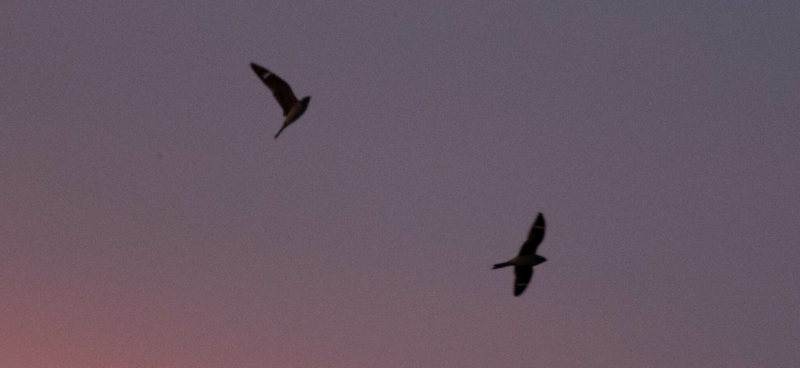 And then, without ceremony, the swifts are gone. The sky is again vacant. I check my phoneâ7:31pm, sunset. I feel intrinsically bad for needing my phone to tell me that itâs nighttime while standing outside, but at least the swifts keep to a strict schedule. Swifts before the sun sets, nighthawks after. If theyâre coming, now is the time. The anticipation is palpable among the group. Over the next few minutes, we wait with baited breath in silence. Pupils dilate searching for silhouettes in the twilight. Someone lets out a telltale gasp. Act II: The Common Nighthawks.