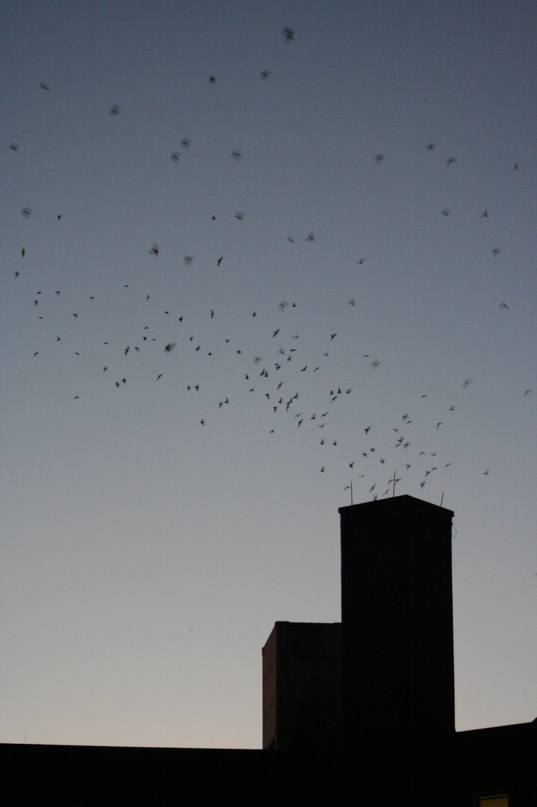 I canât see the sun behind the buildings of the Upper West Side, but the orange hues in the sky are becoming increasingly vivid and I know theyâll soon fade to black. All at once, the Chimney Swifts flying in a large amorphous cloud above us begin to converge towards a single point on Central Park West, creating a triangle-shaped gradient in the sky. Theyâre headed to roost. When they reach their chimney of choice, somewhere along 83rd or 84th, they begin to plummet, descending in a feathery vortex. For a few minutes, their continuous sooty downwards spiral into the chimney looks almost like smoke emanating in reverse. Itâs a dramatic spectacle that has occurred every night this summer, all without my notice. Am I really that oblivious? I fear that Iâve been shutting out beautiful things. I make a promise to myself to look up more.