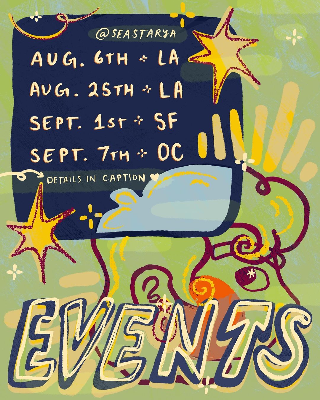 Prepping for upcoming events. Here’s a calendar — if you’re in the area, come say hi!