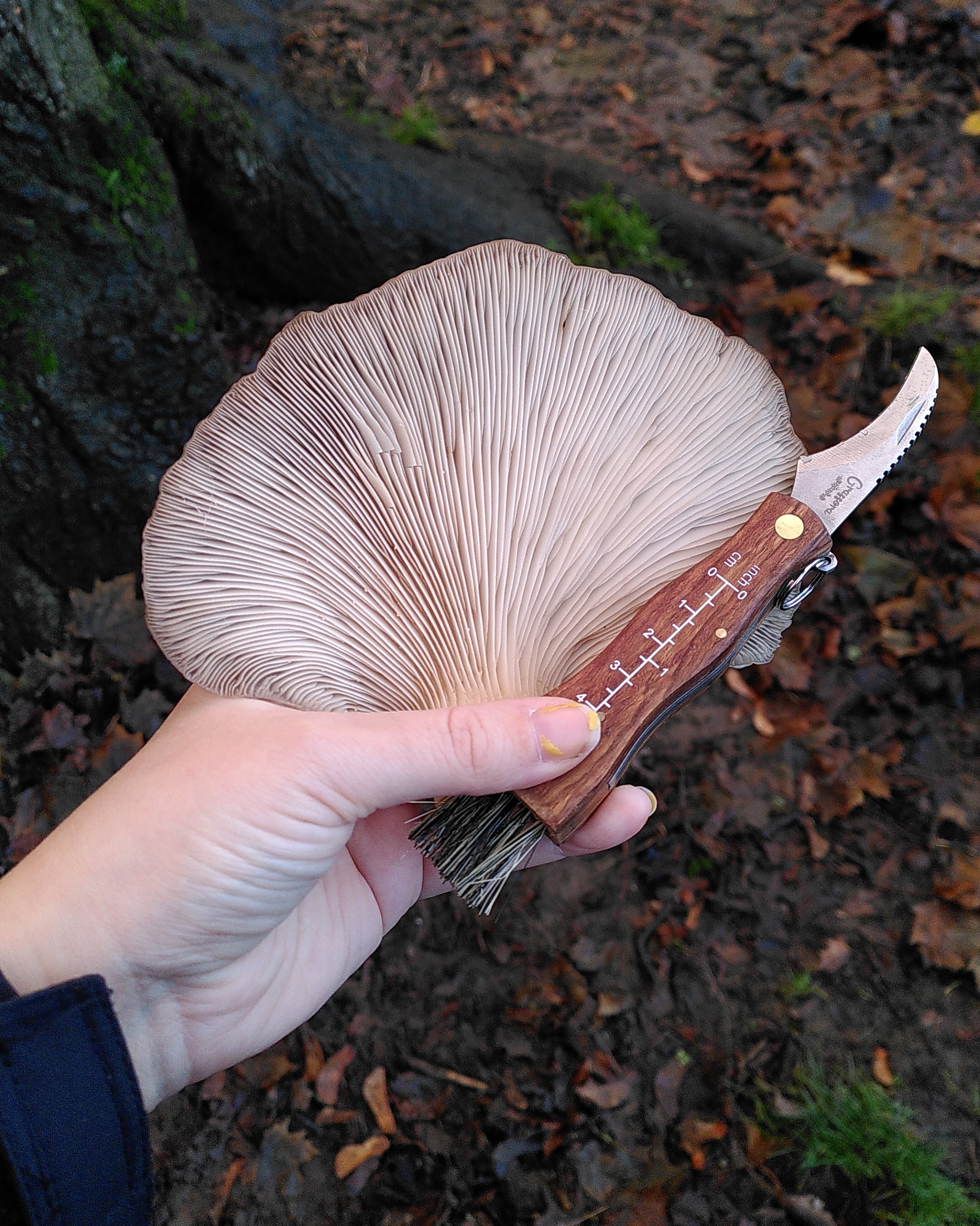 I get my brand-new mushroom knife out and take just one oyster from the tree. The biggest I can find, just to be sure it's not an oysterling, and plod through the damp December day to my partner’s house. Excitement and nerves once again buzzing in my chest.